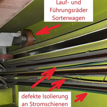 Anfang dieses Jahres waren bei Wartungsarbeiten erhebliche Defekte an der Isolierung der Stromschienen festgestellt worden. Thomas Geue, Gruppenleiter aus dem Bereich der Betriebstechnik: „Wie alle technischen Anlagen unterliegt natürlich auch der Nachschubsorter einem gewissen Verschleiß.“ Das Problem: Defekte an den Stromschienen können zu Schäden und Störungen an der Stromschienenanlage führen. Auch ein längerer kompletter Anlagenausfall wäre dann möglich. Fatal.